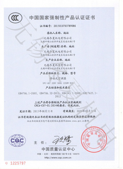 近日,4001百老汇会员登入-百老汇官方网站的移动工业冷气机、暖风机产品7个型号取得了中国质量认证中心颁发的3C强制认证证书。